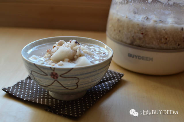 2.待养生壶工作结束后,洗净养生壶,然后将薏米、芡实5g清洗干净,放入北鼎养生壶中,加水至1200ml,启动养生汤模式。待养生壶工作模式结束后,加入适量的盐调味即可。