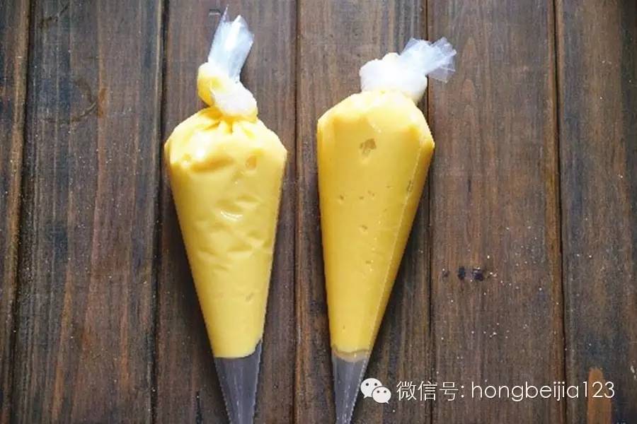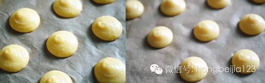 挤面糊也有秘诀:裱花嘴离烤盘大约1cm高并保持不动,挤得时候手用力就可以,裱花嘴不移动不提高不下压,挤完后裱花嘴移开即可;