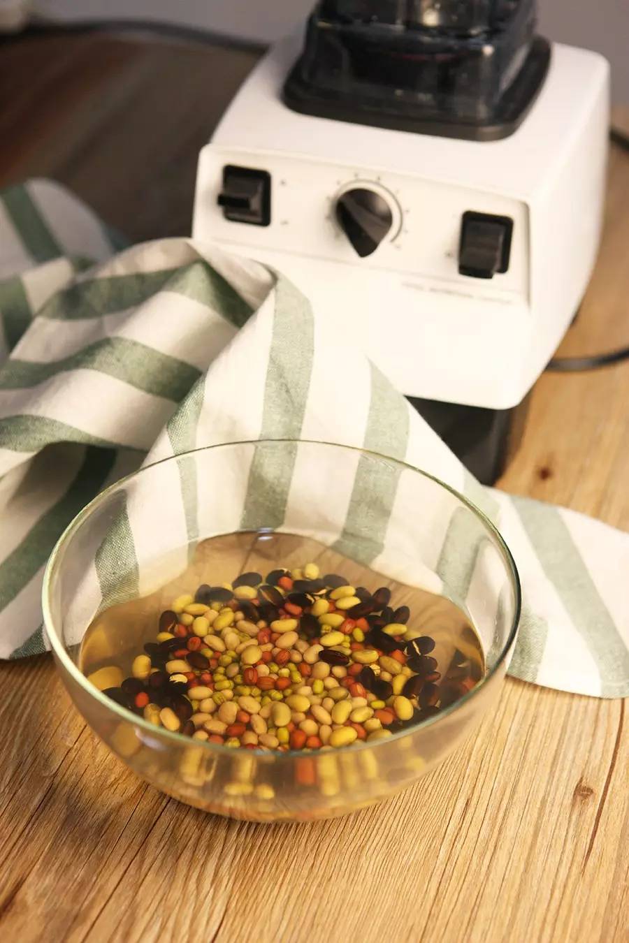 浸泡大豆也有技巧。大豆经过充分的浸泡才能打出口感细滑的豆浆,且减少出渣率。一般要浸泡10余个小时,当气温较高时,应放入冰箱或多换几次水,以避免菌类滋生。有时候,前一晚忘记按时浸泡大豆,可改用热水浸泡,使浸泡时间缩短。有几次,泡好的大豆迟迟没有打成豆浆,经数日换水后就生出了豆芽!