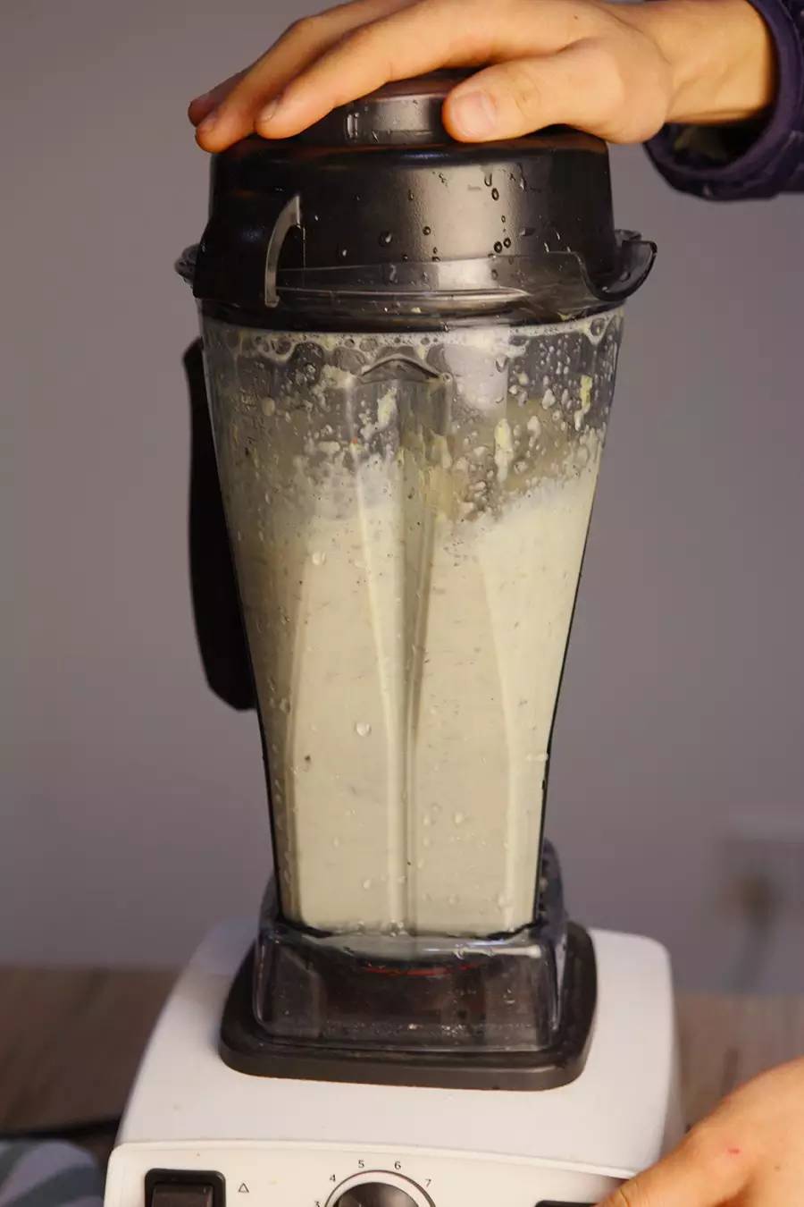 ▼将泡发的豆子放入料理机,并加入1000ml左右的清水,将豆子打碎