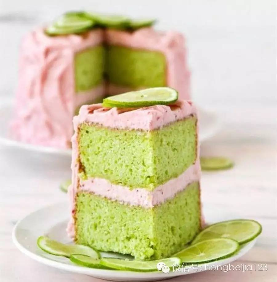 粉色与柠檬绿的搭配真的是太清新,乍一看会以为是草莓抹茶蛋糕,但其实是草莓与柠檬的搭配,单单看起来就足够如沐春风。