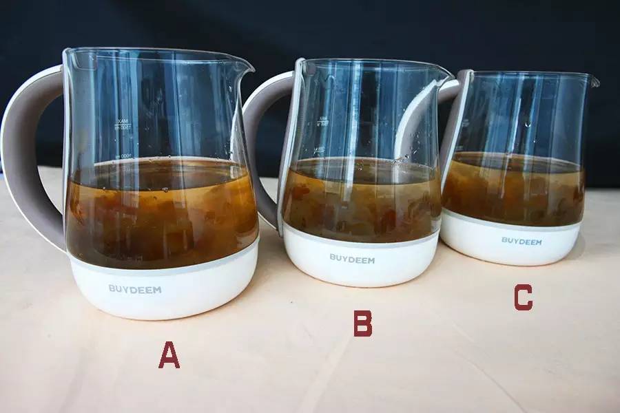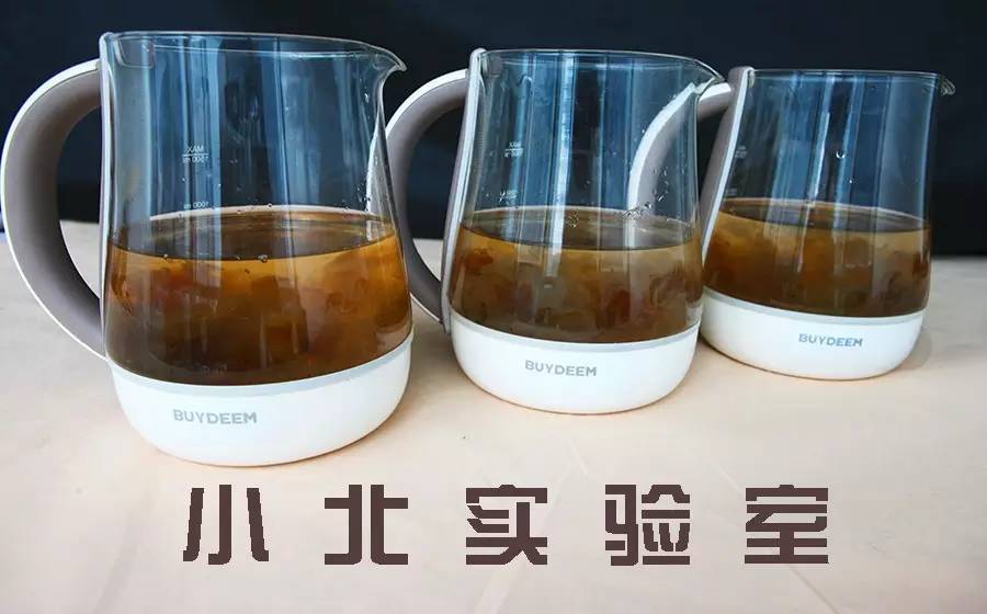 经过泡发这个环节,基本可以确认,这三种样板中并没有假货,于是进入熬煮环节。在经过60分钟的熬煮之后,高下自见分晓。