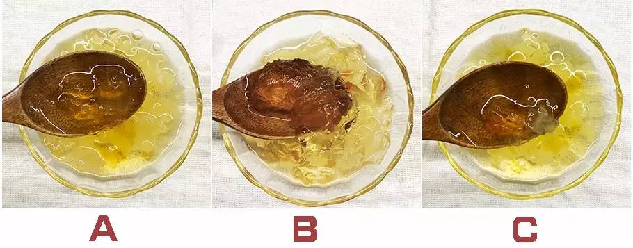 ▲ 使用同样20g桃胶样品,加入等量银耳熬煮的桃胶银耳羹