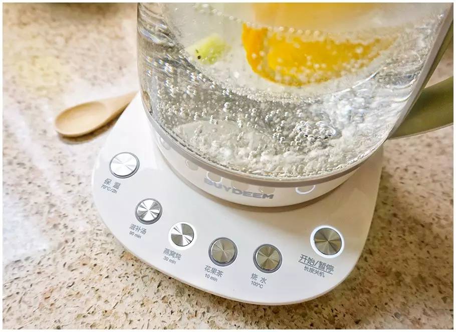 ▼壶内加水至放盅前最高水位线,放入炖盅,选择燕窝功能,开始隔水炖。炖的时候看着壶底咕嘟咕嘟冒泡很有意思~透明设计就是这么萌,