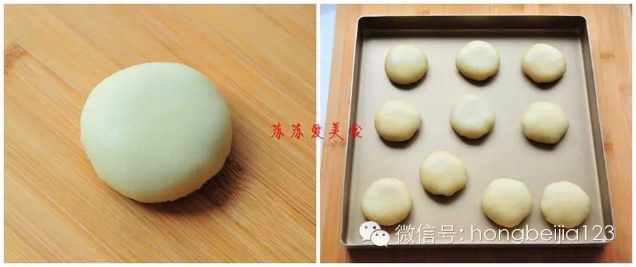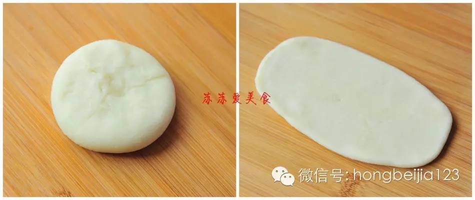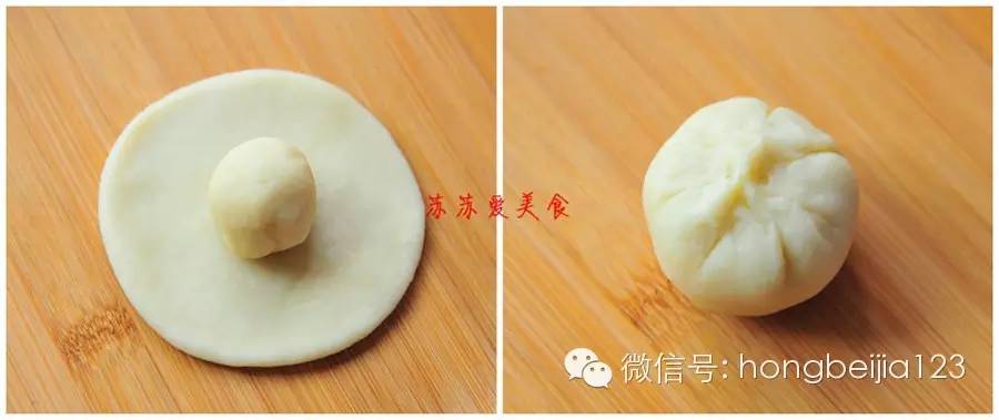 ▼上面放上一个水油酥面团,像包包子一样包紧收口。