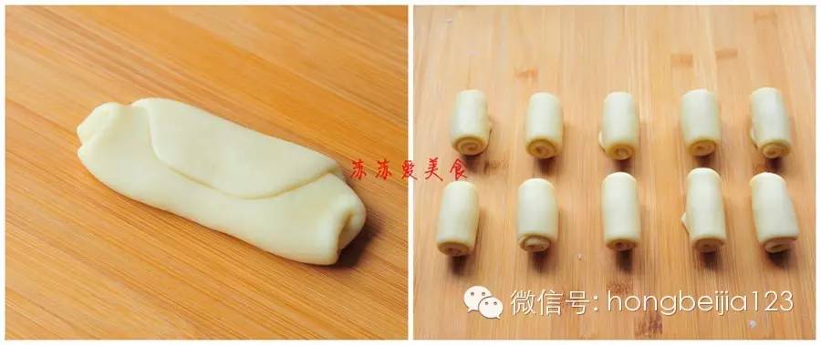 ▼卷成筒状,盖保鲜膜松驰15分钟。
