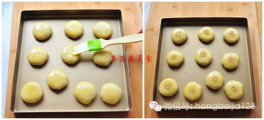 ▼表面刷上蛋液,中间撒上白芝麻,烤箱预热200度烤18-20分钟。