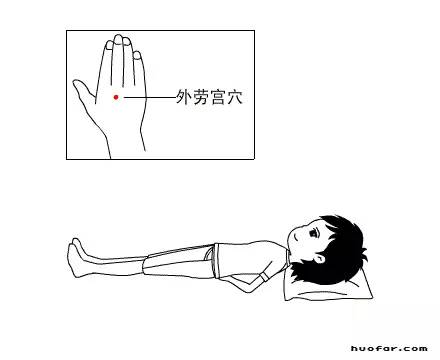 在手背对掌心的地方就是外劳宫穴,脏腑积有寒气热气,皆能和解。将两手外劳宫紧贴腰部肾区,双掌的热量直接温煦了二肾,可将肾内寒气祛除,尤其是晚上10点半至11点,是亥时尾、子时头,此刻地气最旺,地气通过内劳宫吸入,穿过外劳宫直接注入二肾,伴随二掌的热量和五行之气,温煦了二肾。