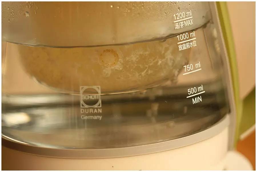 ▼壶内放进去1000ml的清水,之后把炖盅放进壶里面,