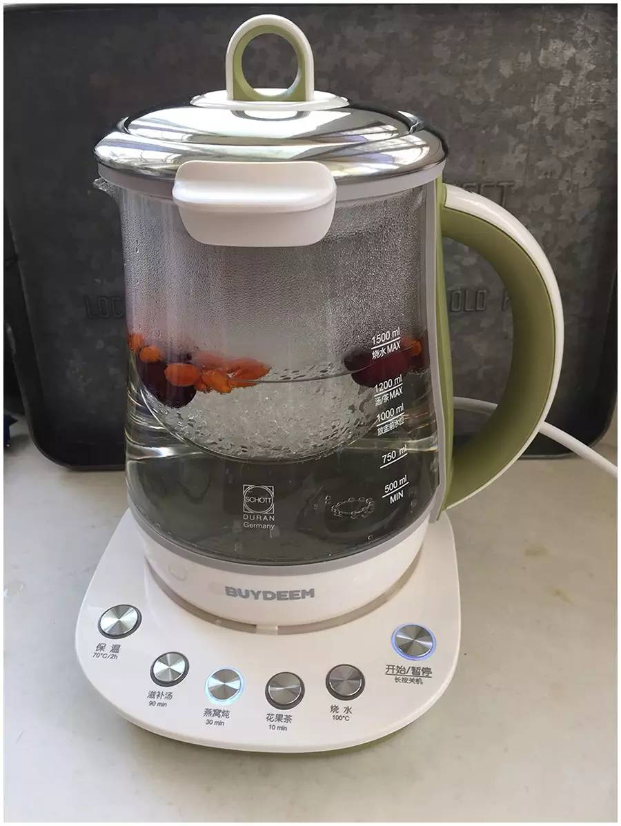 ▼选择燕窝炖模式,炖30分钟。 如果没有养生壶,可以用隔水炖盅代替,千万不能直接下锅炖。因为隔水炖温度没有那么高,高温会使燕窝中水溶蛋白质流失;比起传统的隔水炖盅北鼎养生壶更加轻巧方便且不占位置,透明壶身可以随时观察汤水的状况。