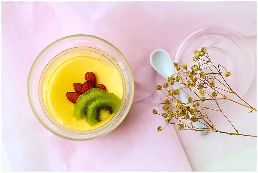 ➄程序结束后取出炖锅,加入大杏仁及奇异果装饰。