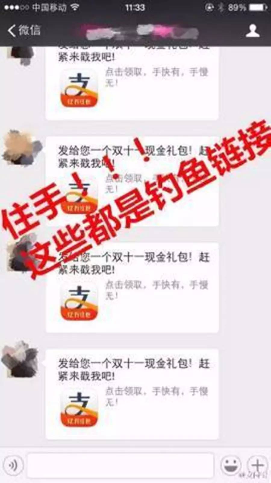 如果有人在微信里给你发来“发给您一个双十一现金礼包”的链接,千万不要点开!