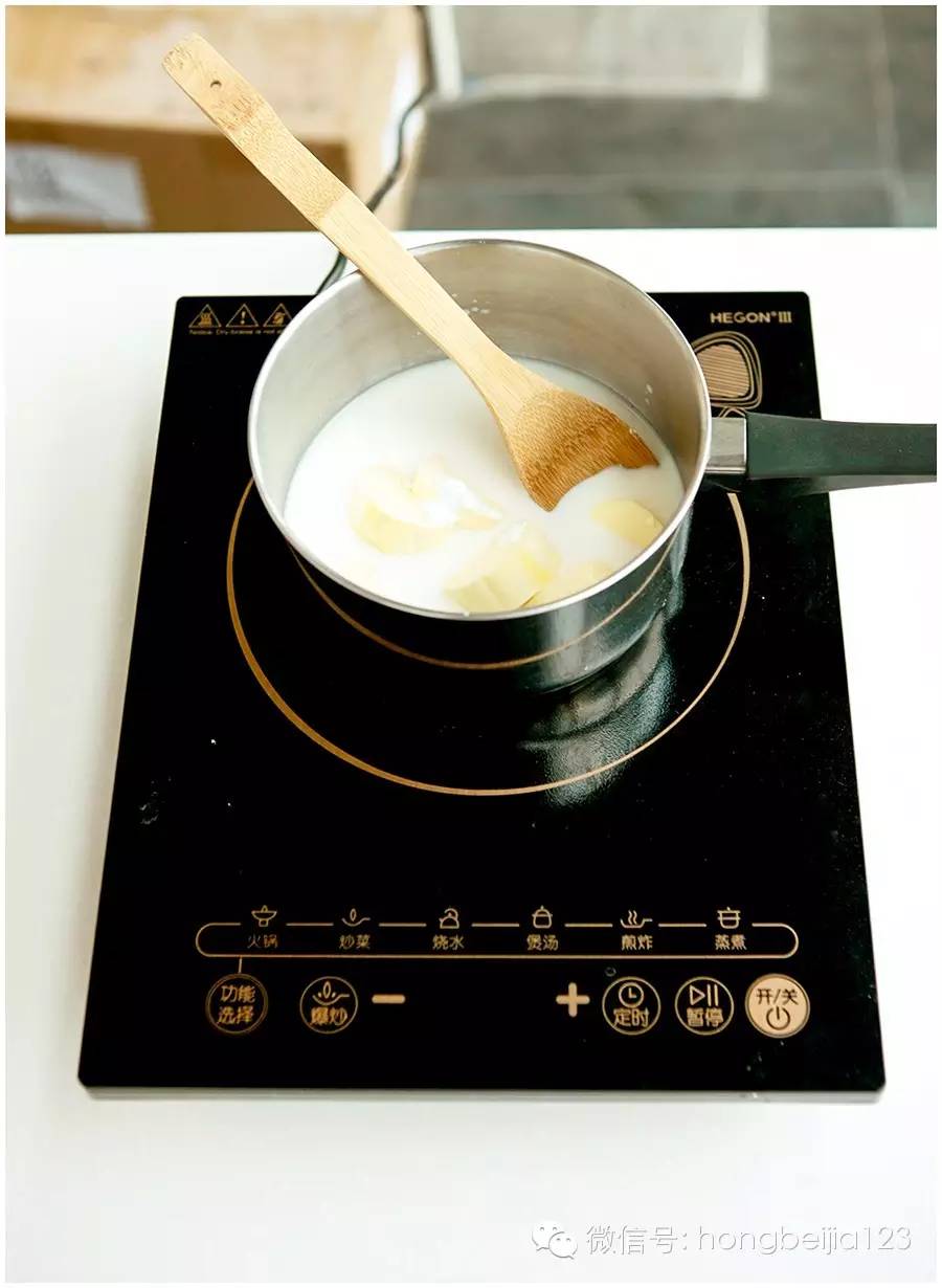▼A部分全部放在厚底的奶锅里,煮到沸腾,转小火。