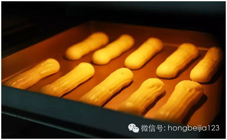 ▼将挤好的面糊放入烤箱,中下层,温度转190度,烤至少20分钟,至泡芙表面的裂纹里面也呈现中等的褐色为止。让泡芙在烤箱里闷5分钟,再出炉。