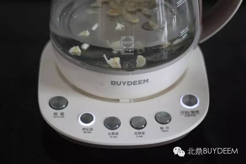1. 将百合干洗净放入北鼎养生壶中,加水至500ml,启动养生汤模式。