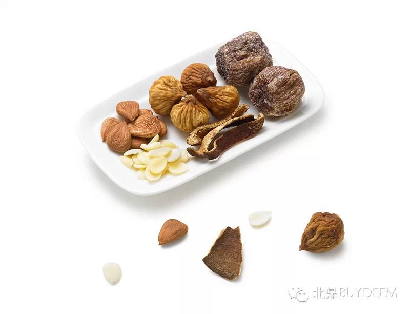 1. 将雪梨洗净去芯切块,取无花果,杏仁,陈皮,用清水洗净后,放入北鼎养生壶中,蜜枣直接放入,加水至1500ml。