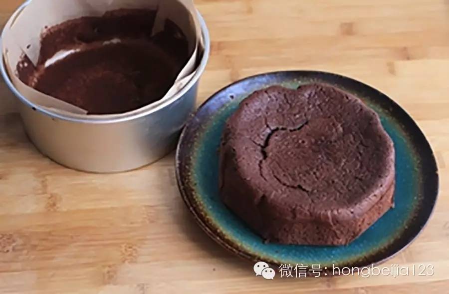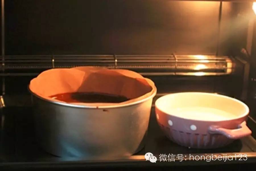 ▼最好用水浴,这样蛋糕会比较湿润,我是活底模具懒得包锡纸,直接放了碗水在旁边烤,烤箱中下层,上下火,180度,20~25分钟,就可以拿出来了,这个蛋糕粉类较少,烤好的时候似乎是半熟的状态;从烤箱取出后放架上冷却,粗热去了之后整个模子放入冰箱冷藏。