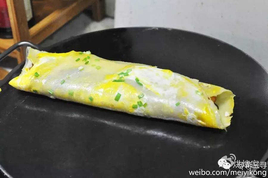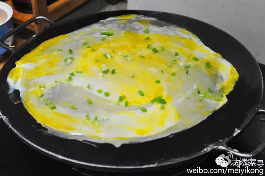 ▼打一个鸡蛋,鸡蛋摊均匀,撒葱花,关火。