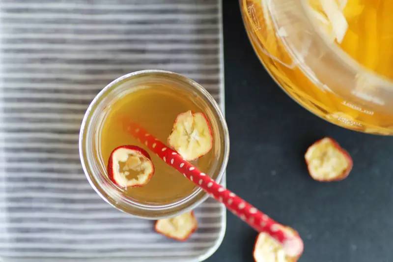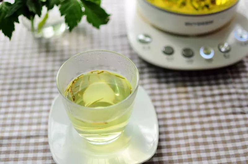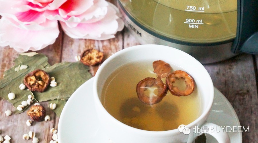3.养生壶加入1500ml水,烧开后放入茶包,焖泡3分钟后挤入柠檬汁后,放入柠檬与冰糖即可。