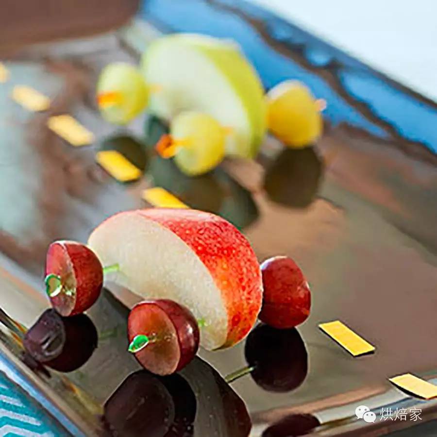 无论是苹果还是梨,只要用牙签插上葡萄小轮子,就是男孩们都会喜欢的小车子!当然了,吃的时候记得要把牙签拔出来哦。