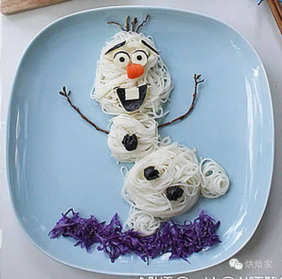 如果你的小朋友想要在早上吃米线或粉丝,那么你可以试试用叉子为他卷出一个Olaf。看它的表情,就像是在说:“你好啊小可爱!你今天心情好吗?”