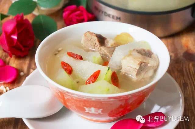 瘦肉50克,冬瓜100克,薏米50克,枸杞5克,姜2片。1000ml,养生汤