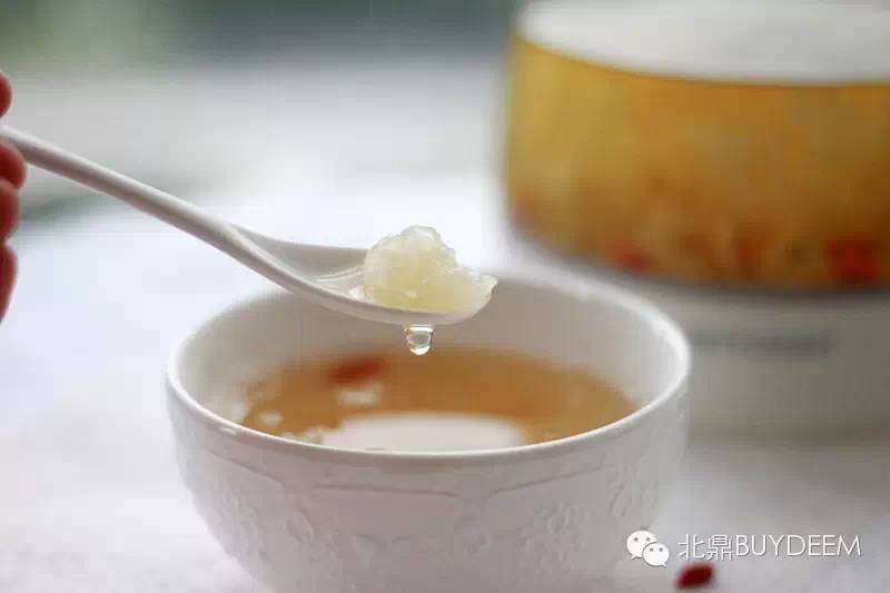 1.将银耳和皂角米泡置清水中2小时。待银耳泡发后去根蒂,洗净,将银耳撕碎成小朵,放入北鼎养生壶;