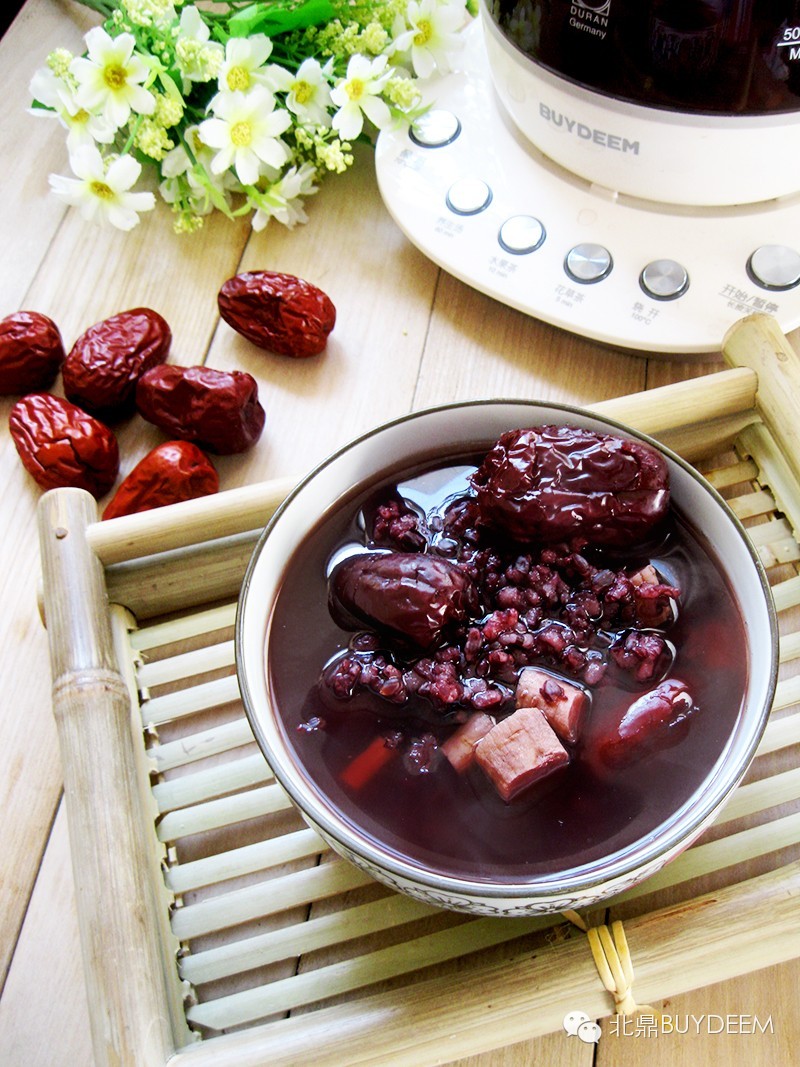 这款粥能健脾益气、养血安神,适用于体虚气弱、食欲不振、脘腹胀满、精神不安、心悸、虚烦、齿龈出血和各种贫血等症状。
