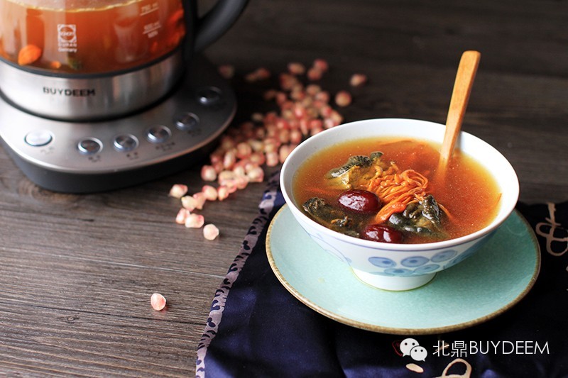 2. 所有材料放入养生壶中,加水至1000ml,启动养生汤模式;