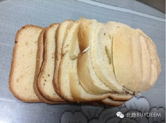 1、提前一晚用面包机自制好牛奶吐司面包一个,备用。(家里木有面包机的朋友也可以直接在面包店购买)