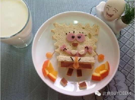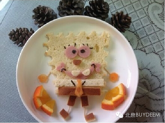 6、一份可爱的海绵宝宝面包餐就打造完毕了。