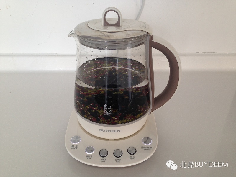 1、将三种食材洗净,放入北鼎养生壶内,加水至1200ML左右,启动养生汤模式。
