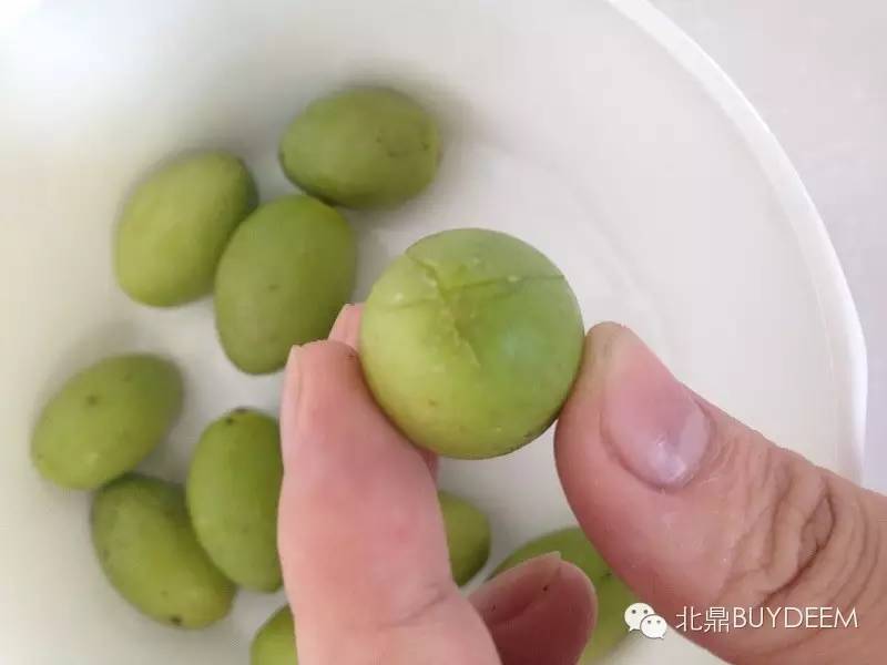 1、将橄榄清洗干净,用小刀在橄榄上划出十字口。
