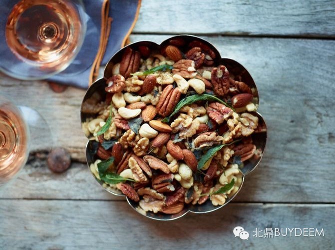 比如说,用大杏仁碎来做蔬菜沙拉,香浓、健康又时尚;又比如说,用核桃仁、松子仁来拌凉菜,清爽、清香又营养。用坚果、油籽与豆子、粮食一起打成豆浆、糊糊也是个好主意,坚果可以增加香味,喝起来特别美味。