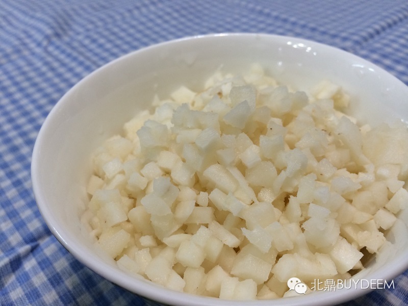 1、马蹄洗干净,切丁。