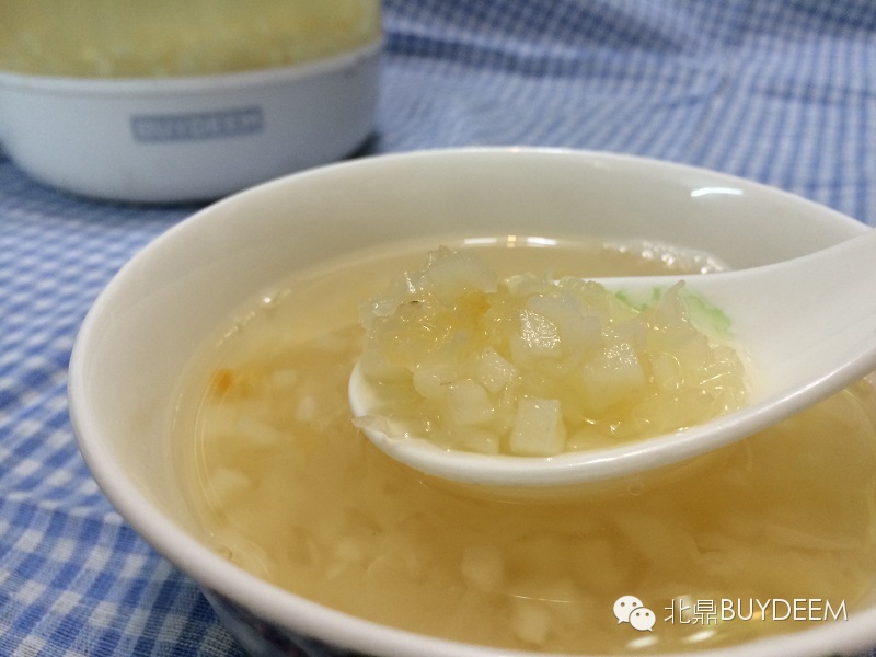 3.将切小块的枇杷加入,继续煮约20分钟左右即可。(最后根据个人口感加入适量冰糖)
