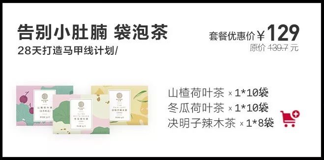 现在三款减肥茶组合特价129元!希望你也能穿进美美的冬装而不会显得臃肿~