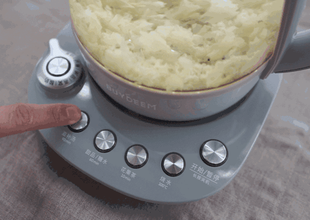 1.泡银耳 2.撕银耳 3.将银耳放入壶内 4.启动相应程序