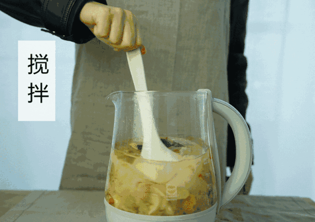 STEP 8:程序进行时,可以适当搅拌一下,防止糊底;待程序自动断电后,加入冰糖即可!