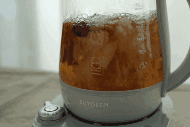 注意!为防止溢壶,煮的时候要把壶盖打开哦!