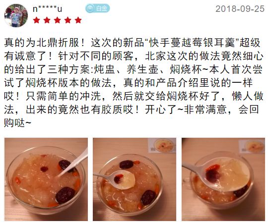 上周刚上新,就被大家抢购一空,好多朋友私聊小北说真的很喜欢这款新品,非常适合喜欢吃银耳又没时间做的人。(感受一下大家的100%好评)