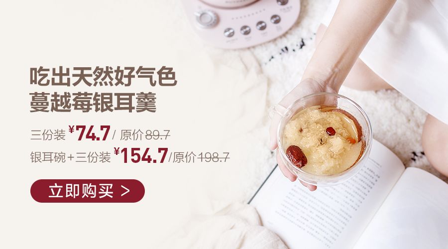 这次,我们把这天然的“抗老果”,加入到中国传统养颜润肤的银耳羹中,造就出一碗酸甜软糯、胶质满满的蔓越莓银耳羹。