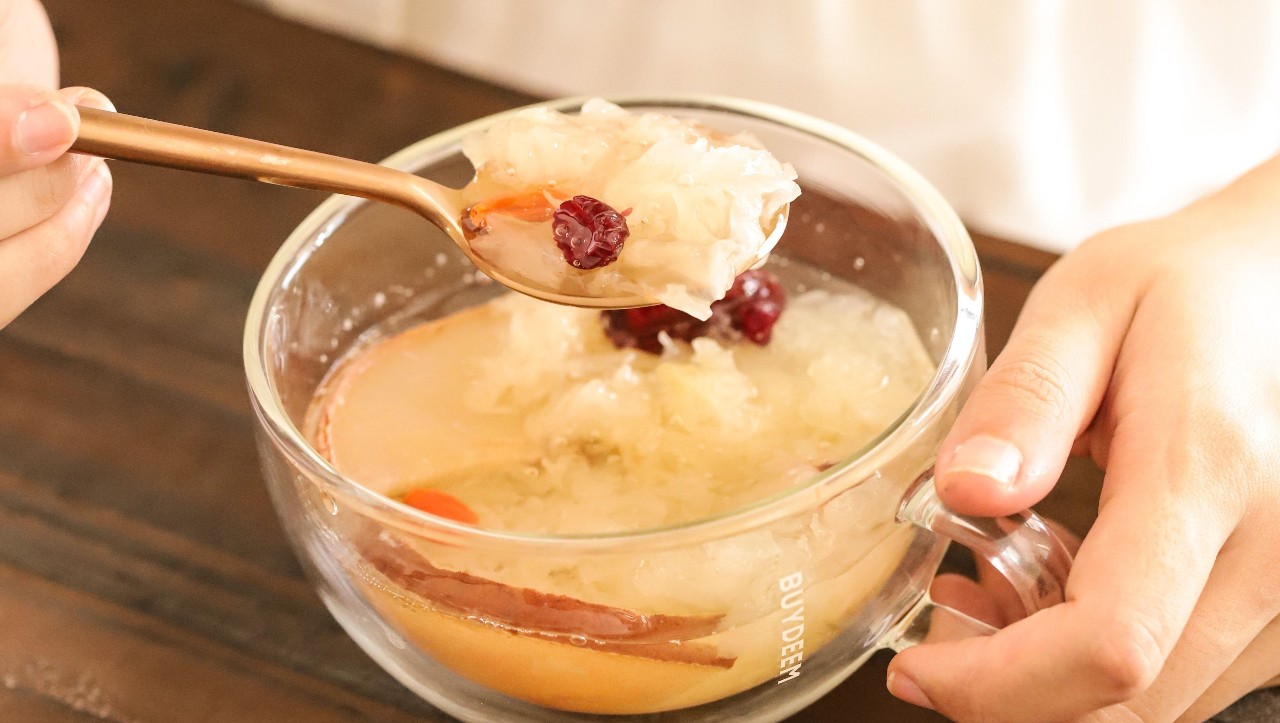 现在小北补完货回来了!这碗不用泡也能胶质满满的银耳羹,化个妆的时间就煮好了,软糯顺滑竟毫不费心。