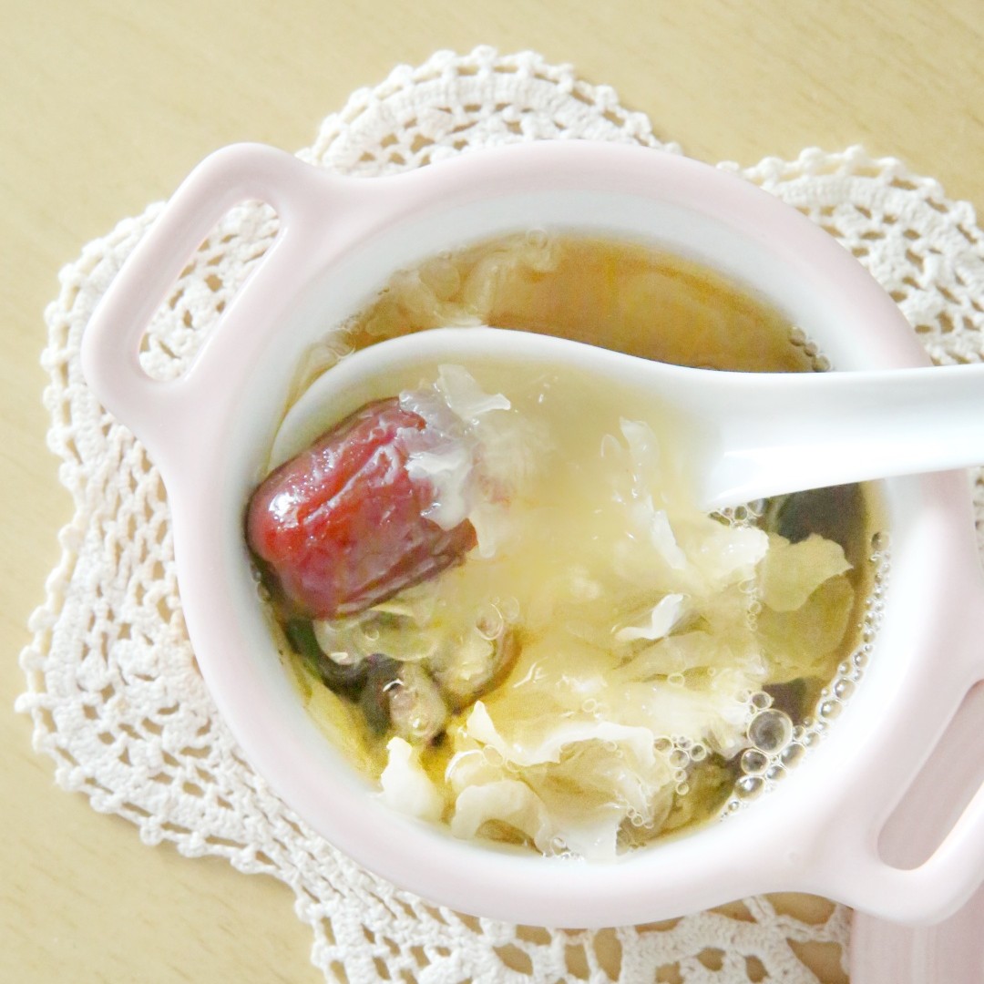 银耳味甘、淡、性平,既有补脾开胃的功效,又有益气清肠、滋阴润肺的作用。富有天然植物性胶质,外加其具有滋阴的作用,是可以长期服用的良好润肤食品。