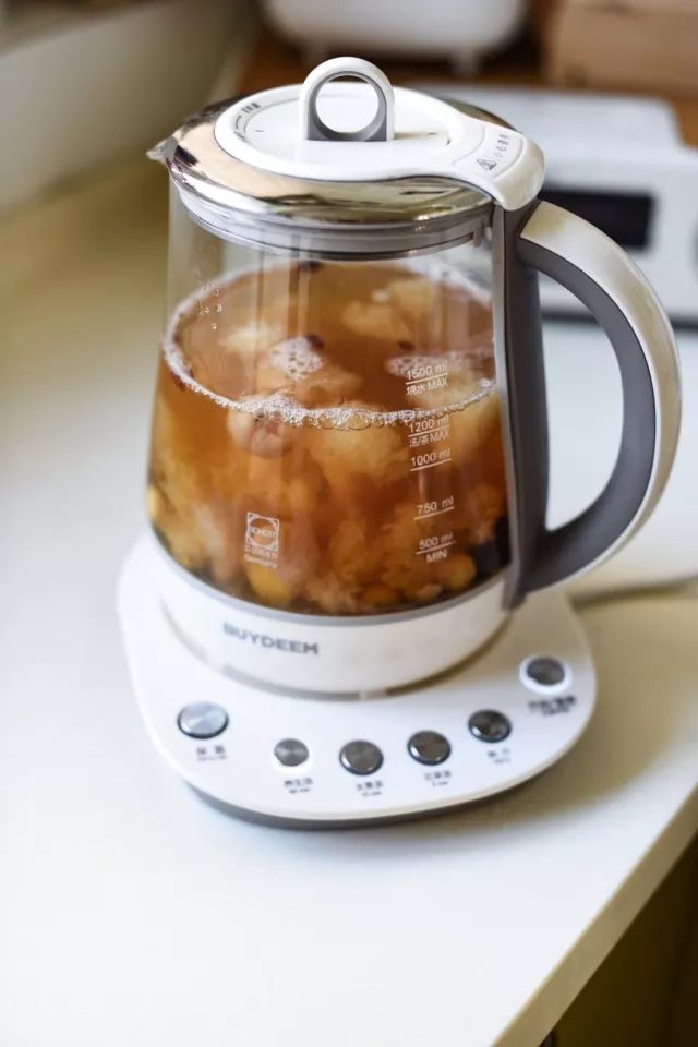 3.因为银耳比较容易起沫,建议水和汤料一起不超过1200ml,否则可能在煮的过程中容易溢出。