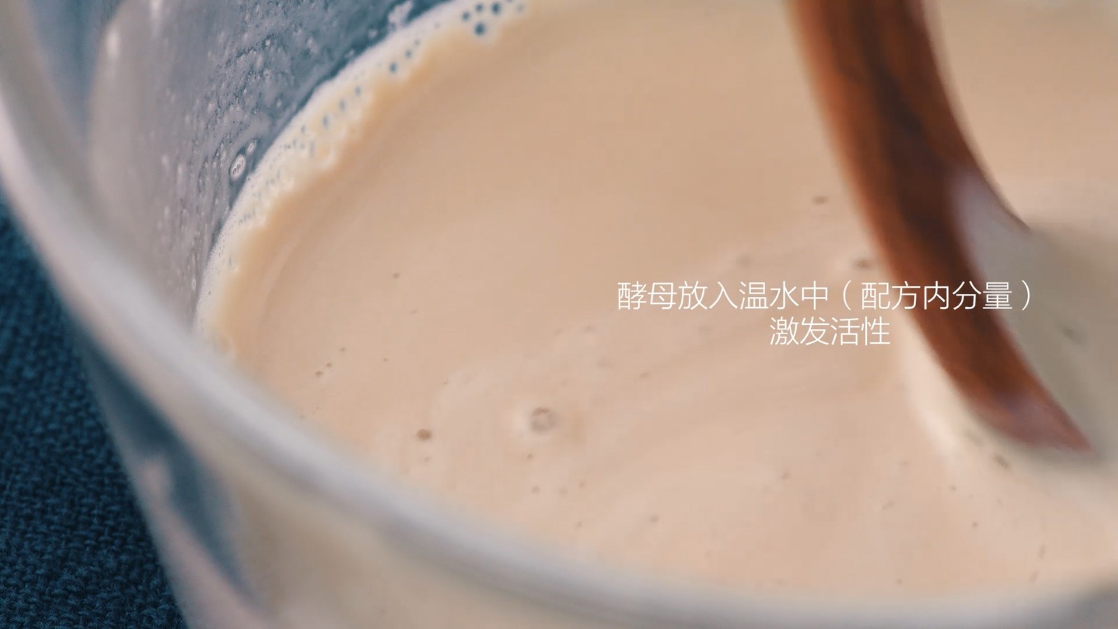 →酵母最好是提前加入温水(分量内)中,激发活性,直接加入的话,要搅散在粉类里,尽量不与蛋液、盐接触;