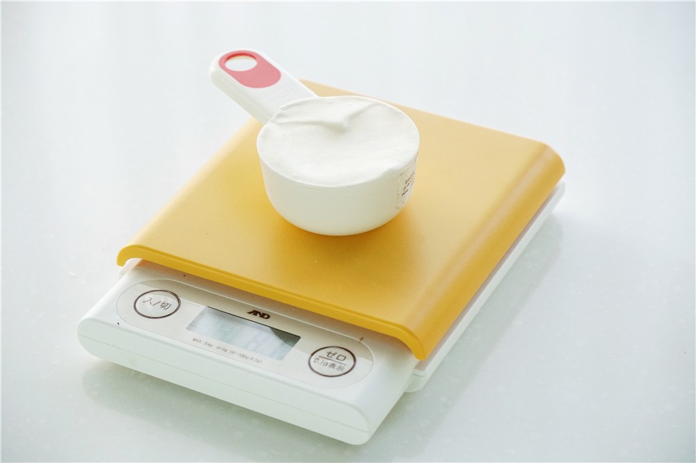 用面糊把100ML量杯装满,顶部抹平上秤,重量在24—26g中间,就代表状态OK。这种方法准确度很高,但比较复杂,最开始练习时可以用,熟练之后心里把握大了就不用每次都使用这种方法了。