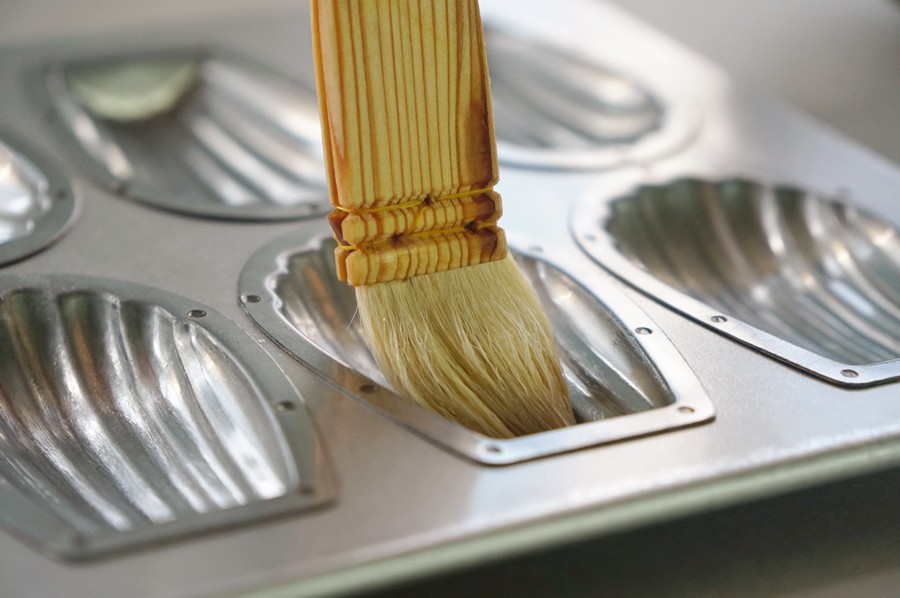 取出黄油,室温软化,用刷子蘸取黄油在模具内薄涂一层;