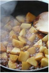 倒入切好的苹果丁翻炒