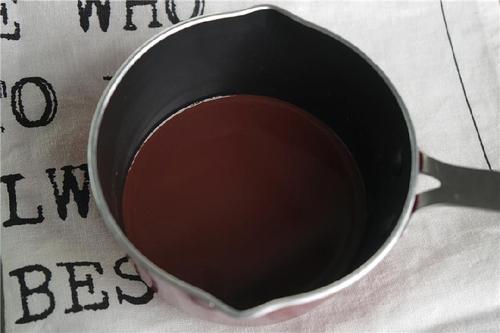 步骤2、玉米油与黑巧在小锅中混合均匀,隔水(水温不超过40℃)融化成液体;